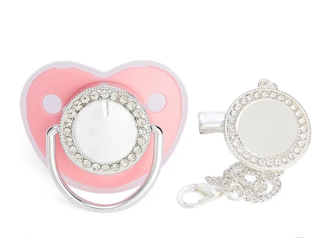 Chupeta e Prendedor Luxo Rosa/Prata - Recém Nascido - Personalizado