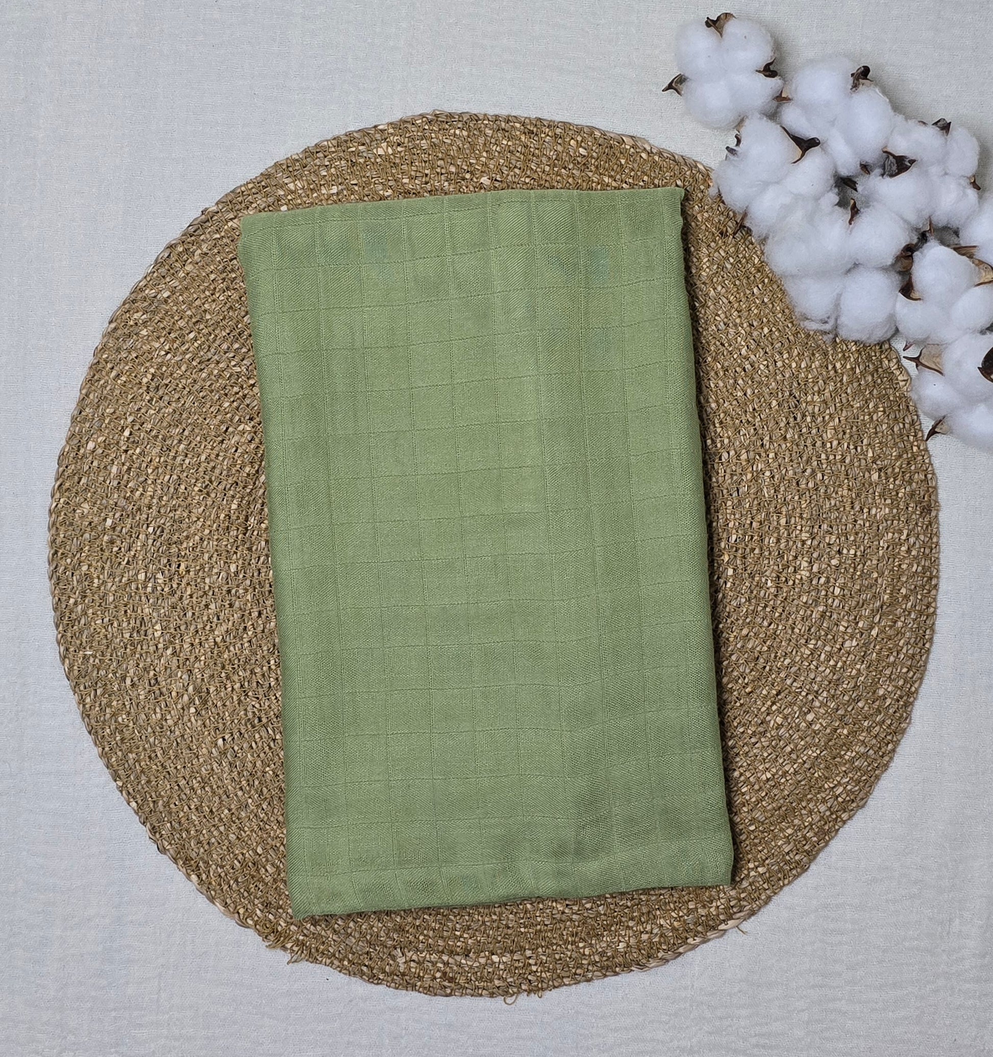 Fraldão 1,20 x 1,10 m em fibra de bambu, extremamente macio e delicado para a pele do recém-nascido.