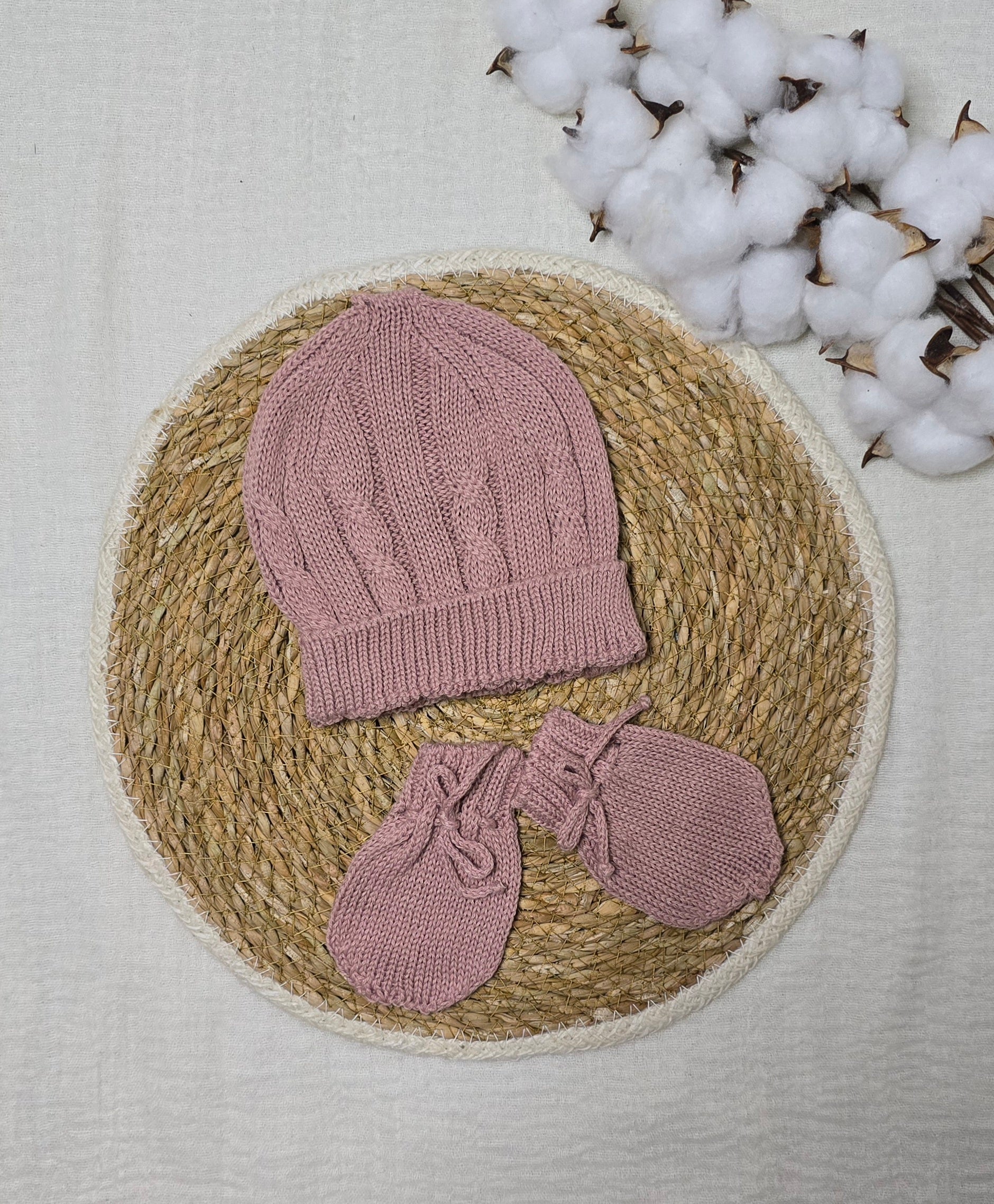 Gorro e luva em tricô Rosê