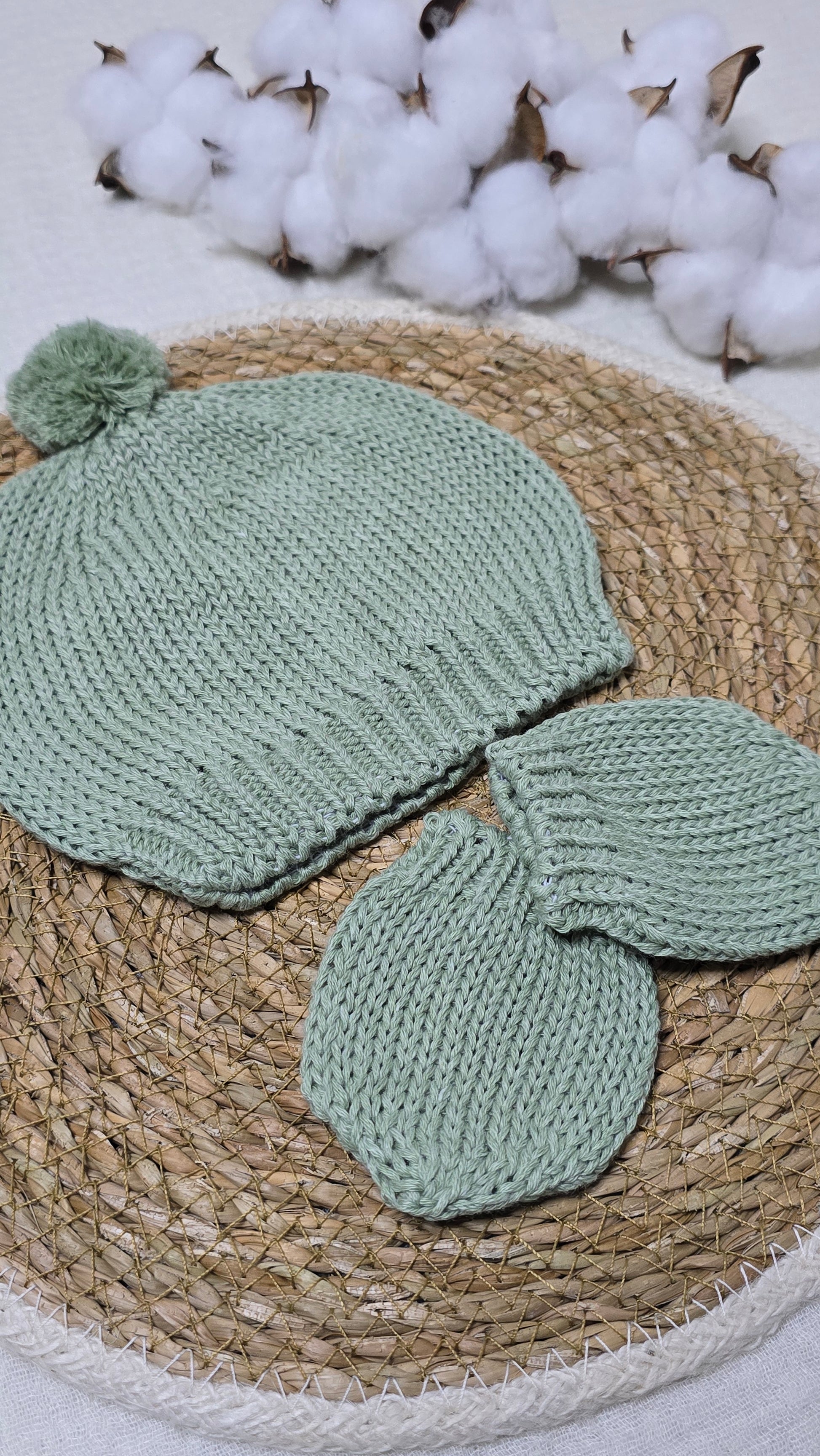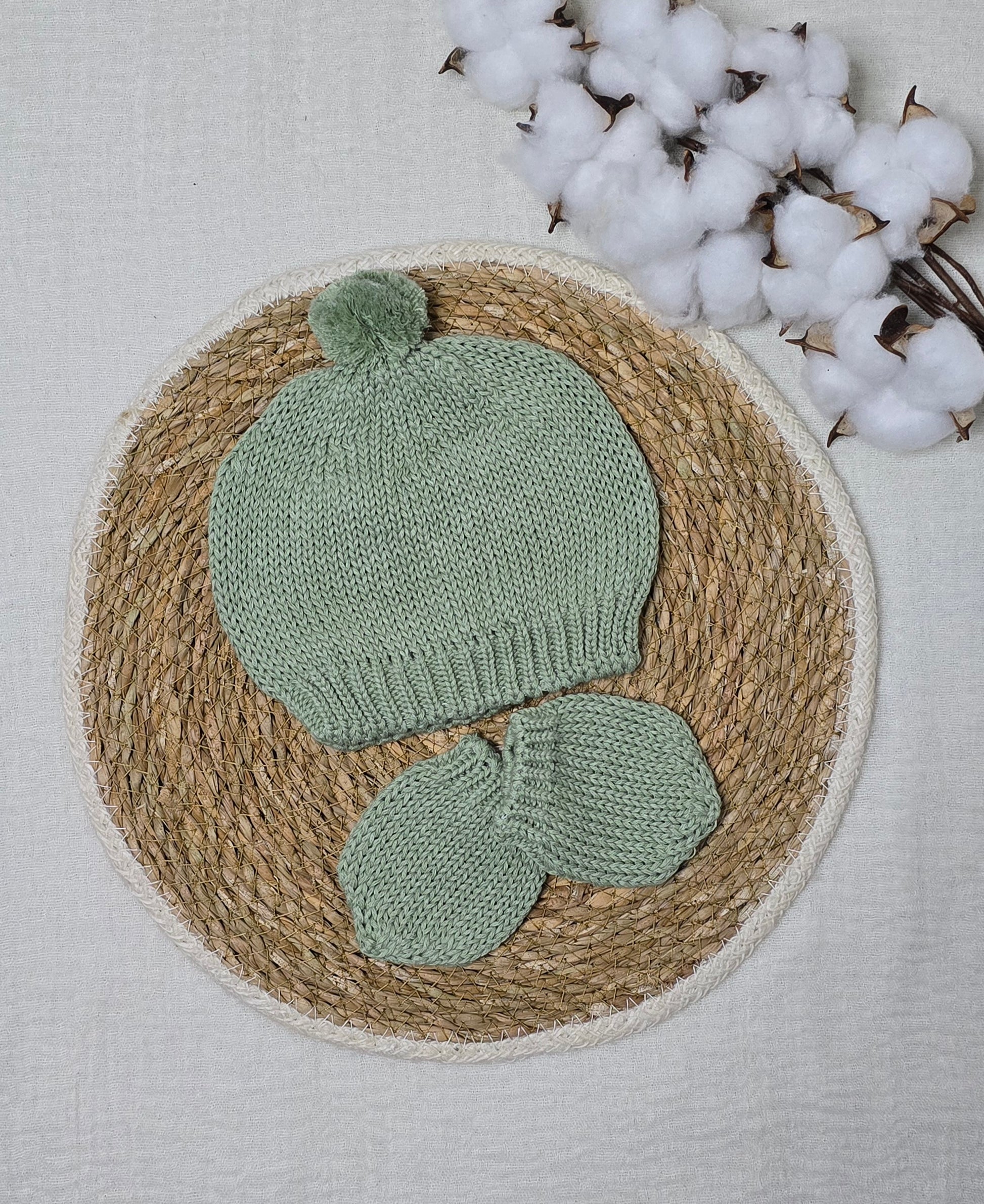 Conjunto de gorro e luvas em tricô,