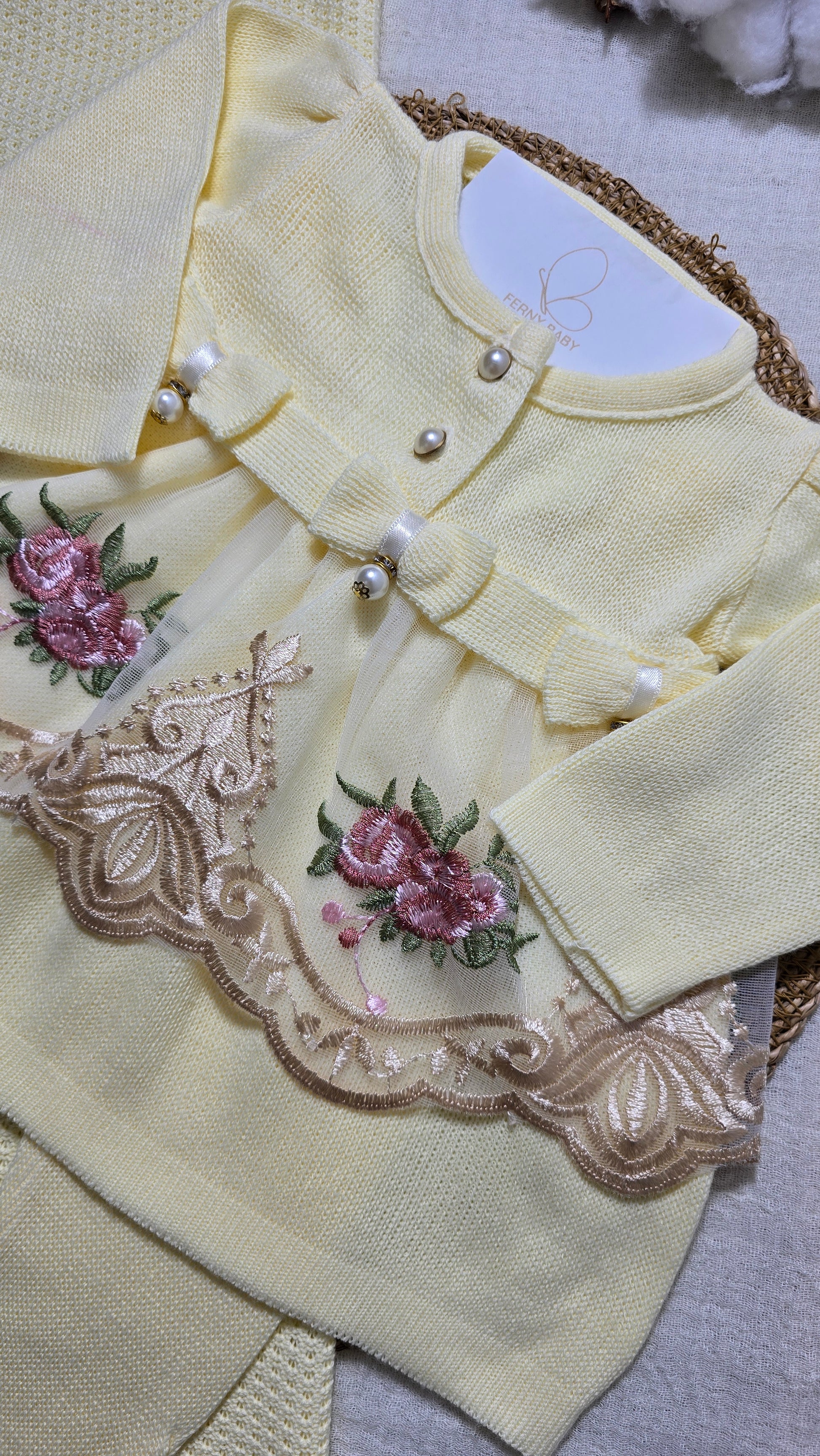 Saída de maternidade Bordada Amarelo - Recém Nascido
