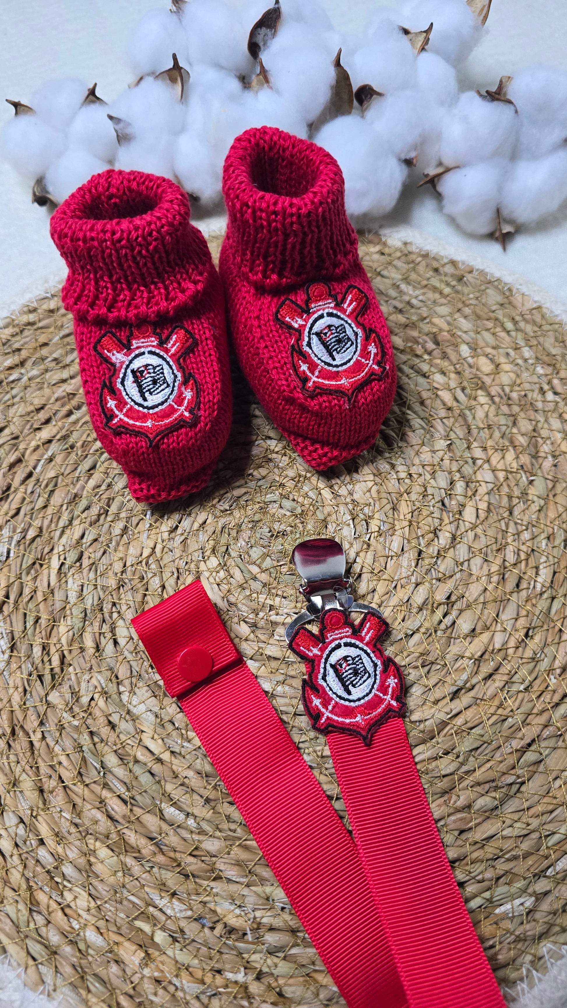 Botinha e Prendedor de Chupeta Corinthians Vermelho