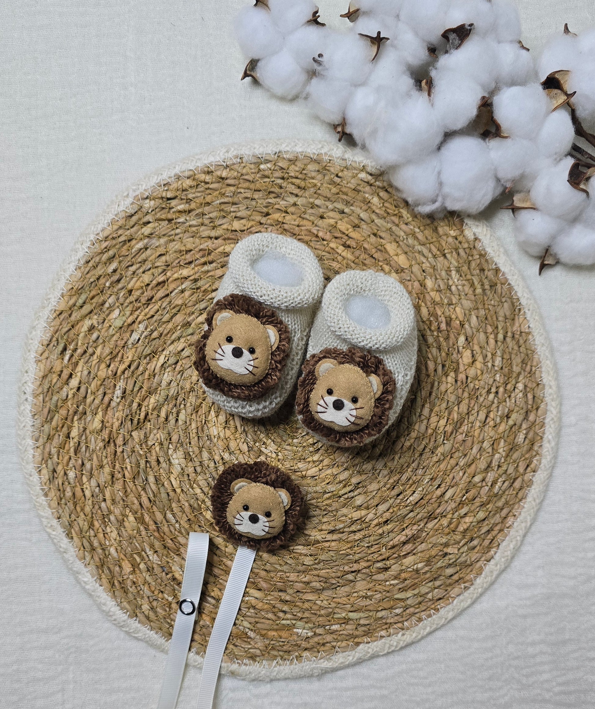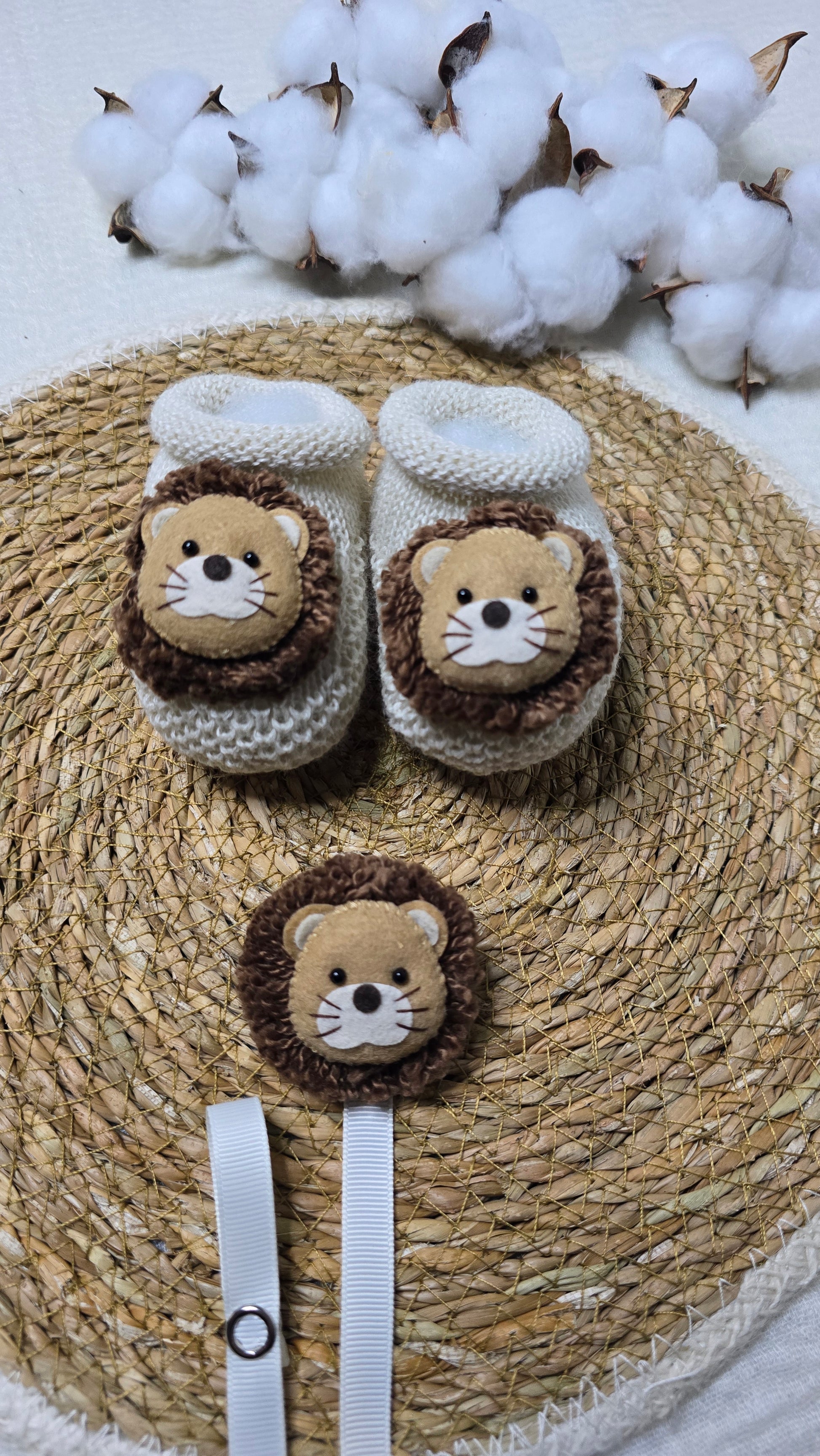 Botinha e Prendedorde Chupeta, pensado para os primeiros dias do bebê. Confortável, macio e delicado, respeita a sensibilidade da pele do recém-nascido e traz um toque de charme ao enxoval. Indicado para bebês de 0 a 2 meses.