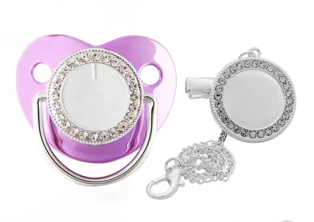 Chupeta e Prendedor Luxo Lilás/Prata - Recém Nascido - Personalizado