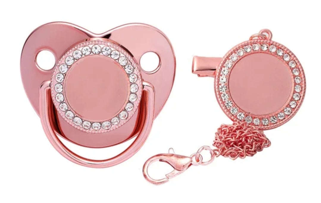 Chupeta e Prendedor Luxo Rosê/Prata - Recém Nascido - Personalizado