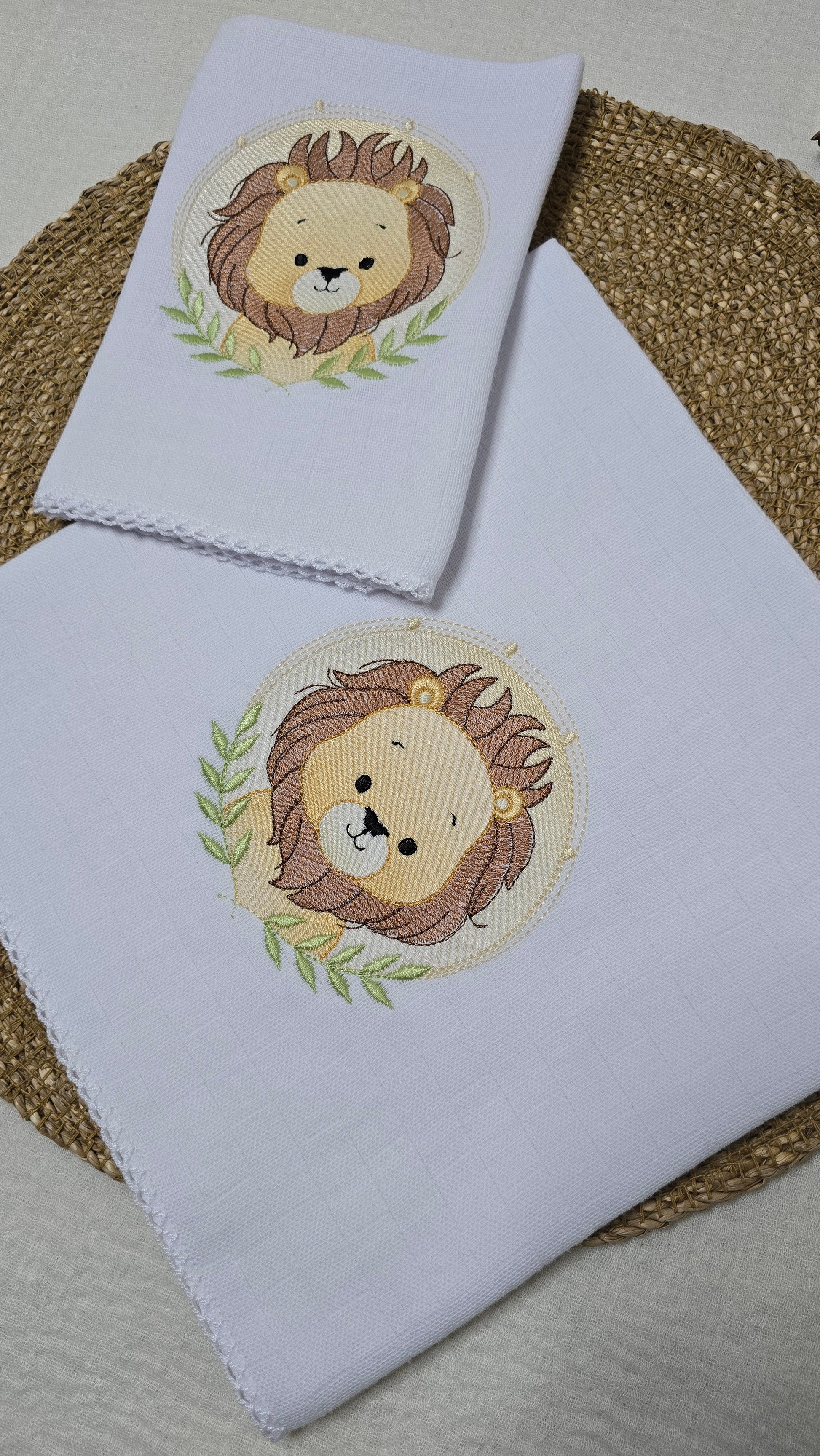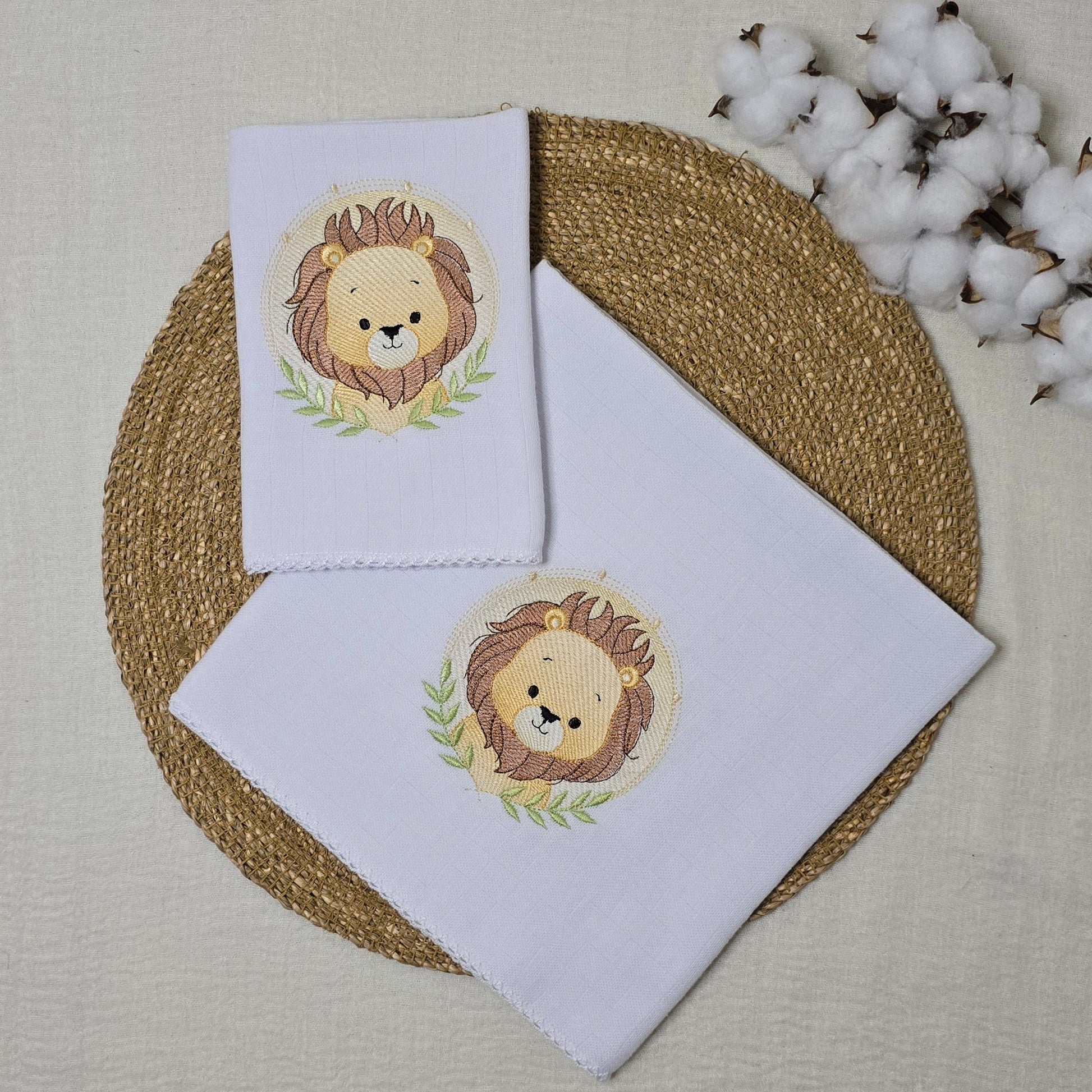 Jogo de Fraldas bordada Leão