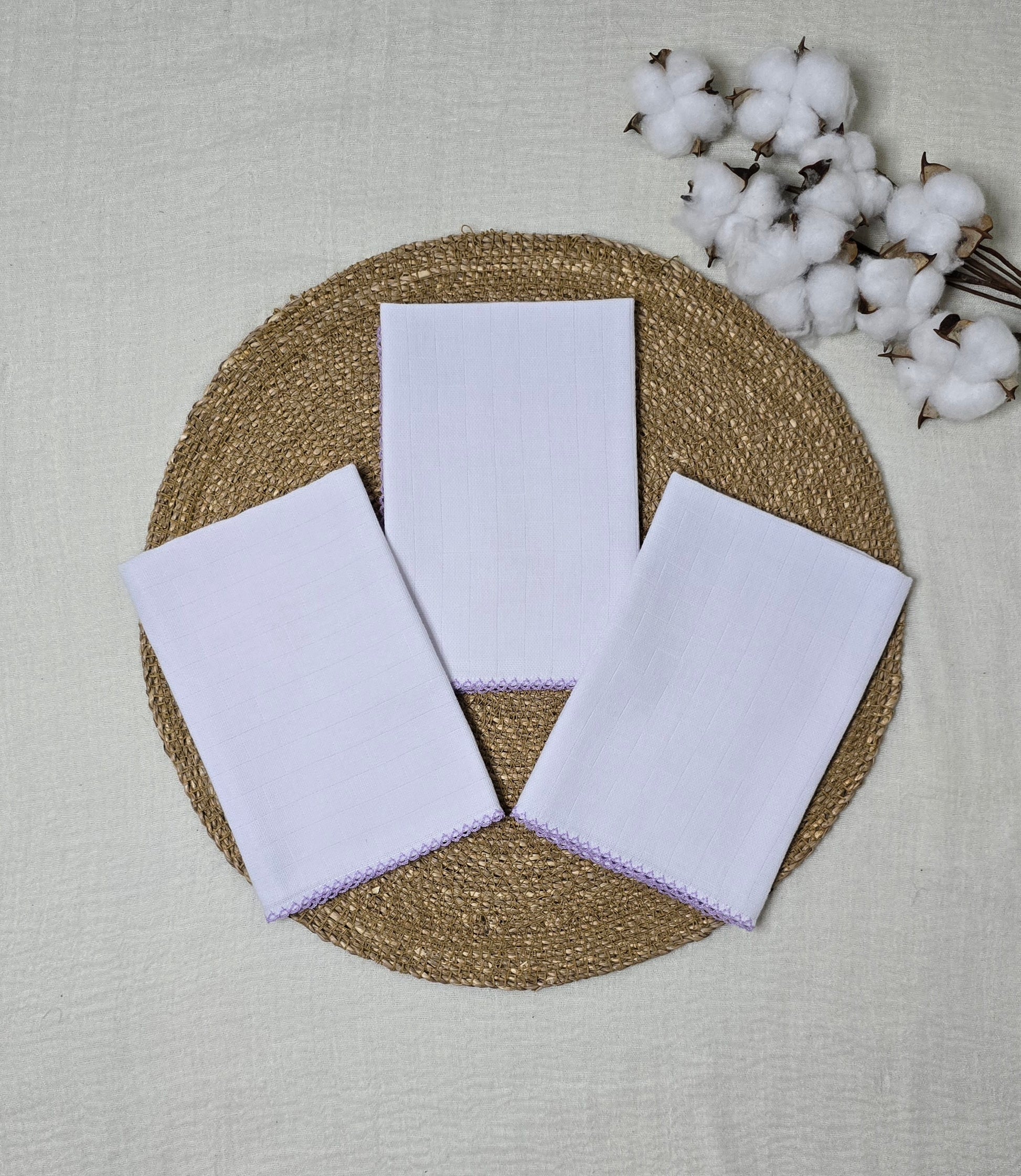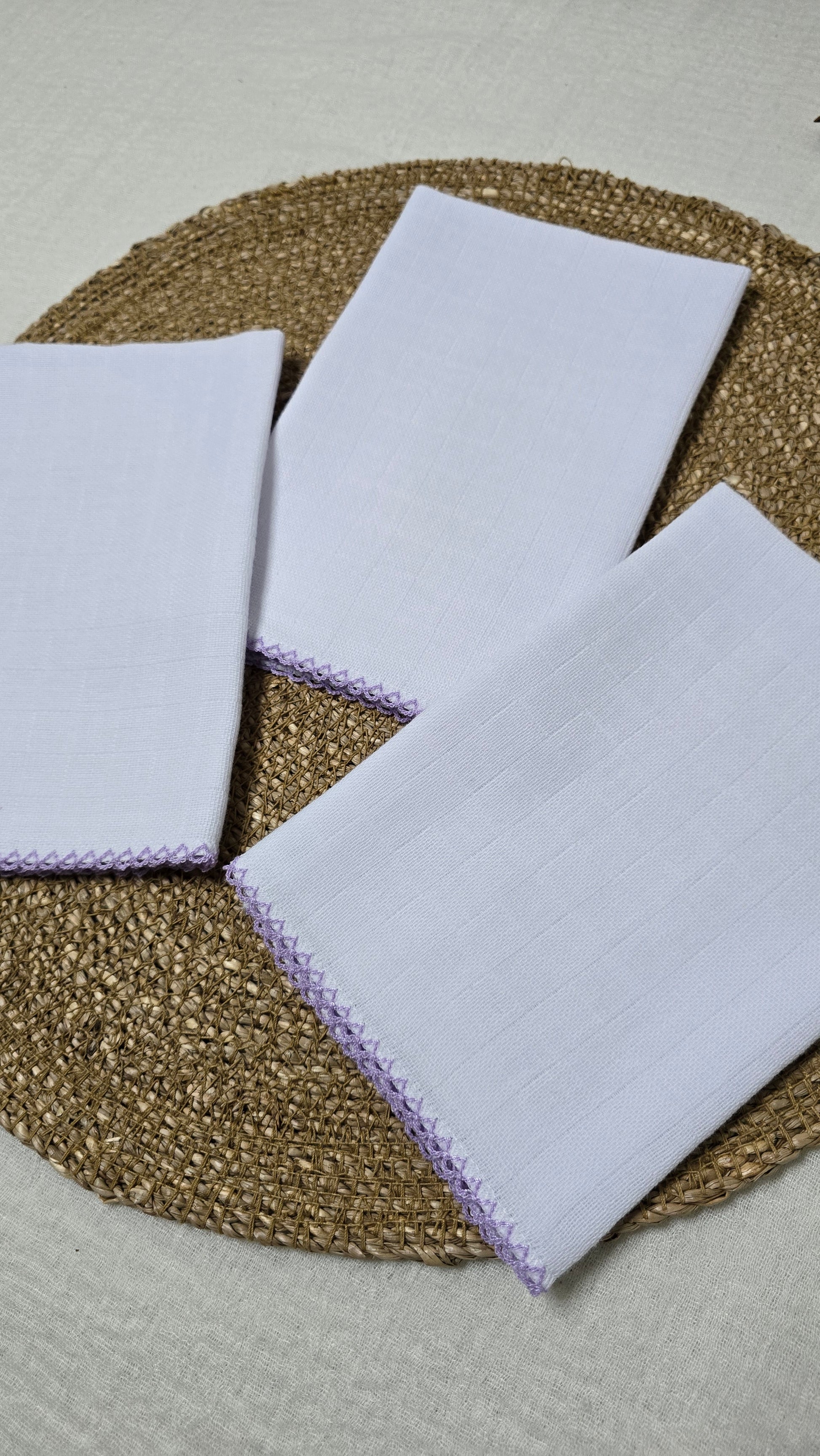 Ideais para limpar babinha, leite ou pequenas sujeiras da boca do bebê. Cada fralda é 100% algodão brasileiro, dupla camada, macia, absorvente e não forma bolinha, garantindo cuidado total para a pele delicada do recém-nascido.