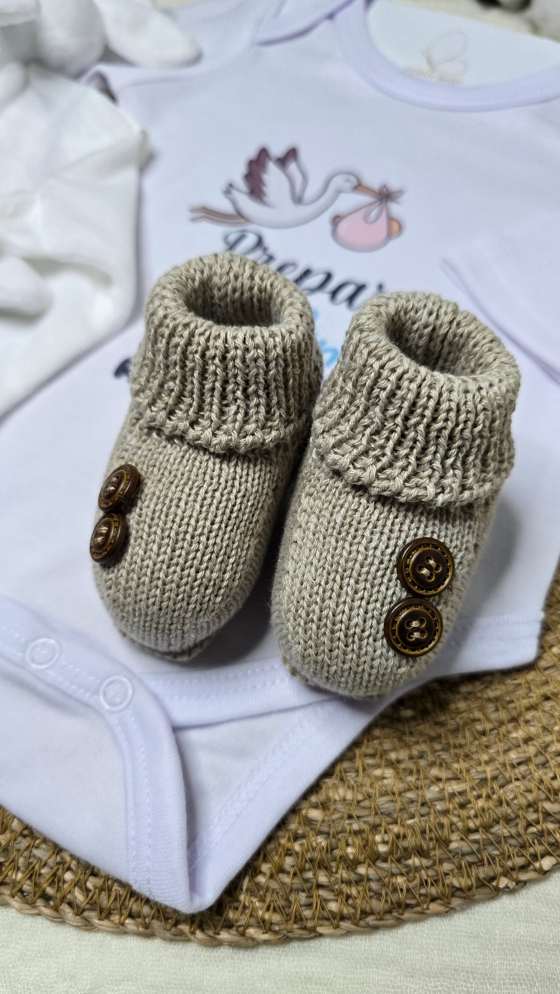 Body e sapatinho indicados para bebês de 0 a 2 meses. Recomendamos sempre conferir as medidas na tabela de tamanhos disponível no site.